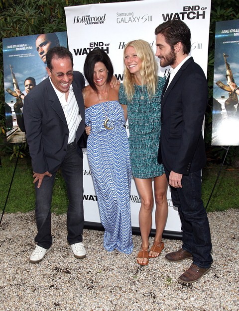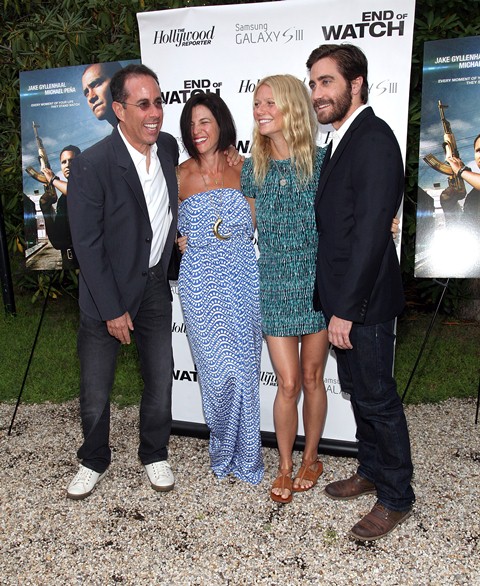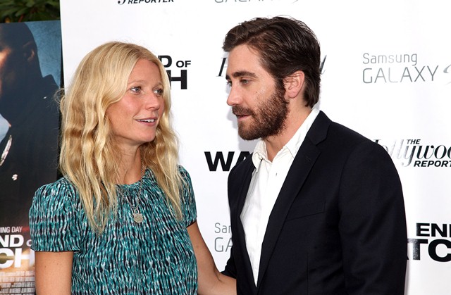 No of course not. Gwyneth is not Pamela Anderson, good God. And it wasn’t about Gwyneth last night. It was about Jake Gyllenhaal’s End Of Watch. Jakey and G have been close for a long time. She was the one who set him up with Taylor Swift. I’m told she was disappointed when he cut and ran out on her. But then again, G is not unfamiliar with friends and their flaws. She’s the one who knows; she’s the one who will tell them that she believes they can do better next time (except for Madonna). By the way, why have Jake and Cameron never happened? Has G ever tried?