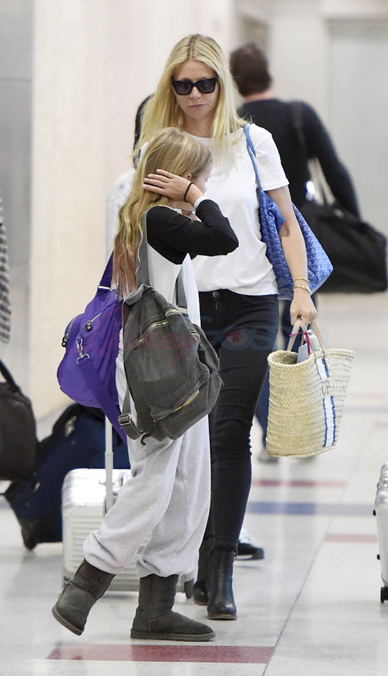 After spending a couple of weeks in England, Gwyneth Paltrow and her kids arrived back in New York yesterday carrying two monogrammed bags. As you know, Jennifer Lawrence has been in New York. So… perhaps Chris Martin will be in New York too. And they’ll all celebrate Independence Day weekend at their home in the Hamptons? That seems to be where G and family will be, especially since they could have flown direct from London to LA.