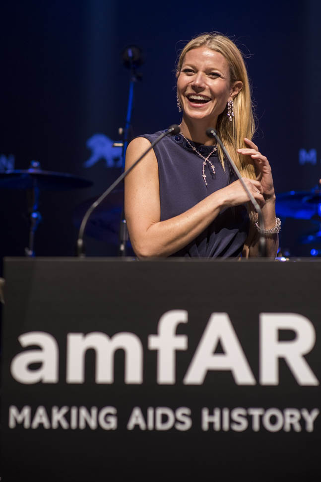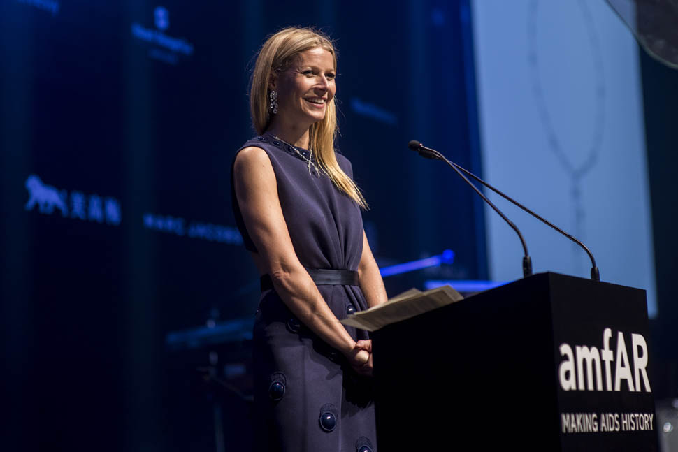 While Chris Martin was at the beach with their kids and Kate Hudson, Gwyneth Paltrow spent 24 hours in Hong Kong to host the first Hong Kong amfAR Gala, raising a reported $4 million for AIDS research and honouring Michelle Yeoh for her work in raising AIDS awareness.