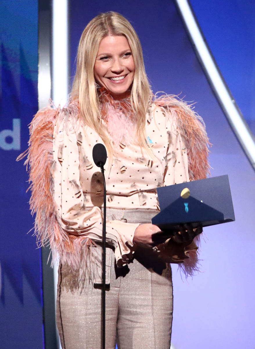 Gwyneth was indeed at the event last night but she did NOT present to the Carters. As IF. While Beyoncé and Jay-Z claimed that they had no idea who’d be introducing them, it’s not unlikely that they would have had some conditions. GP presenting the GLAAD Vanguard Award to the Carters is not the look. So she presented to Love, Simon instead.