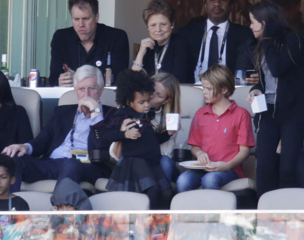 Why did it take me so long to buy these photos of G babysitting the Blue Ivy Carter, the child of the greatest entertainer alive? THE heir of Beyoncé. Blue was with G, Apple, and Moses during the halftime performance at the Super Bowl. So, just to be clear, while Beyoncé was, eh ehm, headlining halftime at the Super Bowl with backup band Coldplay, she left her precious in the care of Gwyneth Paltrow. That’s how deep G is with B. How much do you think she minds that you’re looking at these pictures?