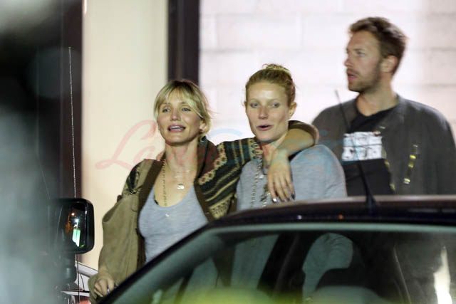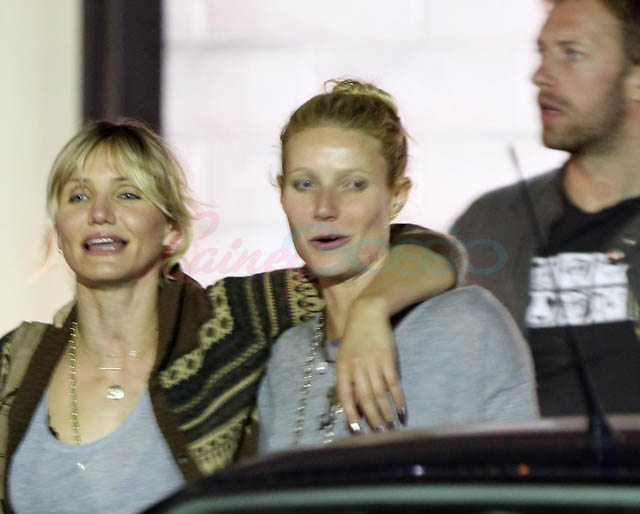 Here they are, G and Cammie, arm in arm after sushi dinner in Brentwood with Chris Martin. You’ll note they’re wearing almost exactly the same thing too -- grey on top and chains looped around the neck and jeans and fresh(ish) faces, and ...