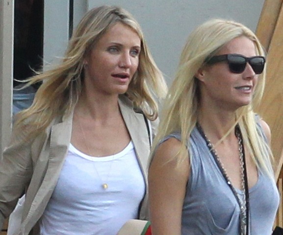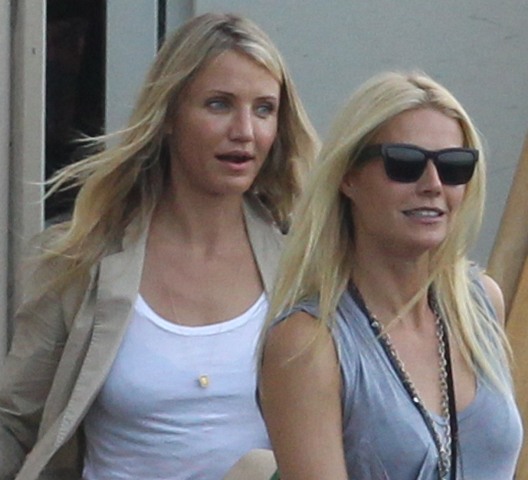Somehow my Gwyneth is popular, one of the most popular girls in Hollywood hanging out with everyone from RDJ to Seinfeld, from Faith Hill to Beyonce, from Madonna to Cameron Diaz. G and Cammie D have been friends for a long time, ever since the Shakespeare in Love awards season when Cam was also up for consideration in Being John Malkovich.