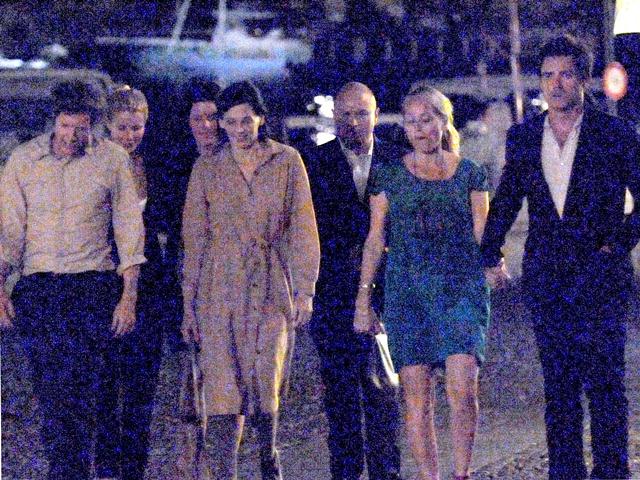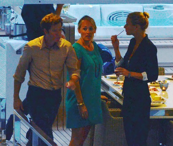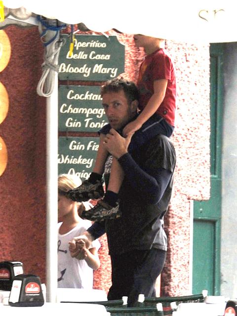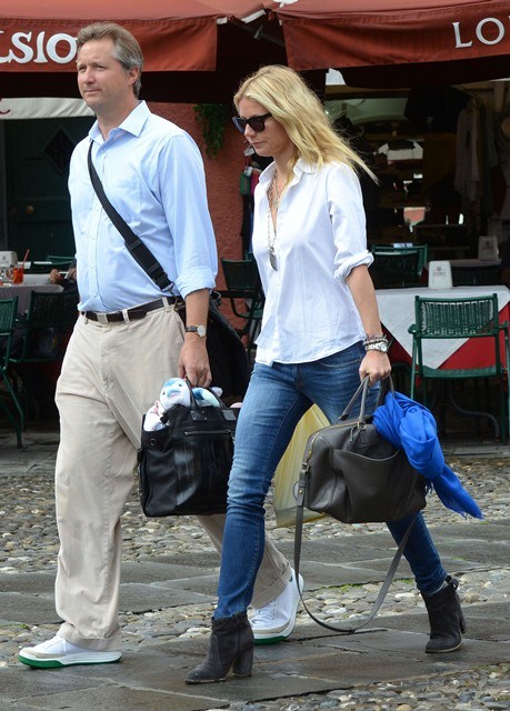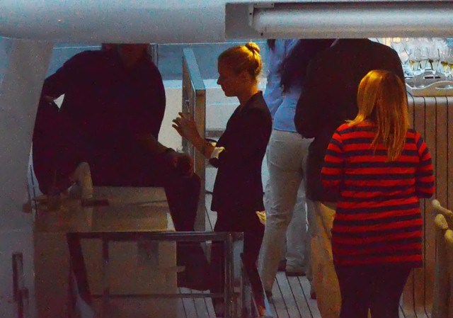 Gwyneth Paltrow celebrated her 40th birthday surrounded by family and friends in Portofino. Don't see her ma around but for sure that's her brother Jake and the kids were there too, and also Chris Martin. Here's a rare shot of them in the same frame. Obviously he had no idea they were being shot. Otherwise he would have jumped off the boat.