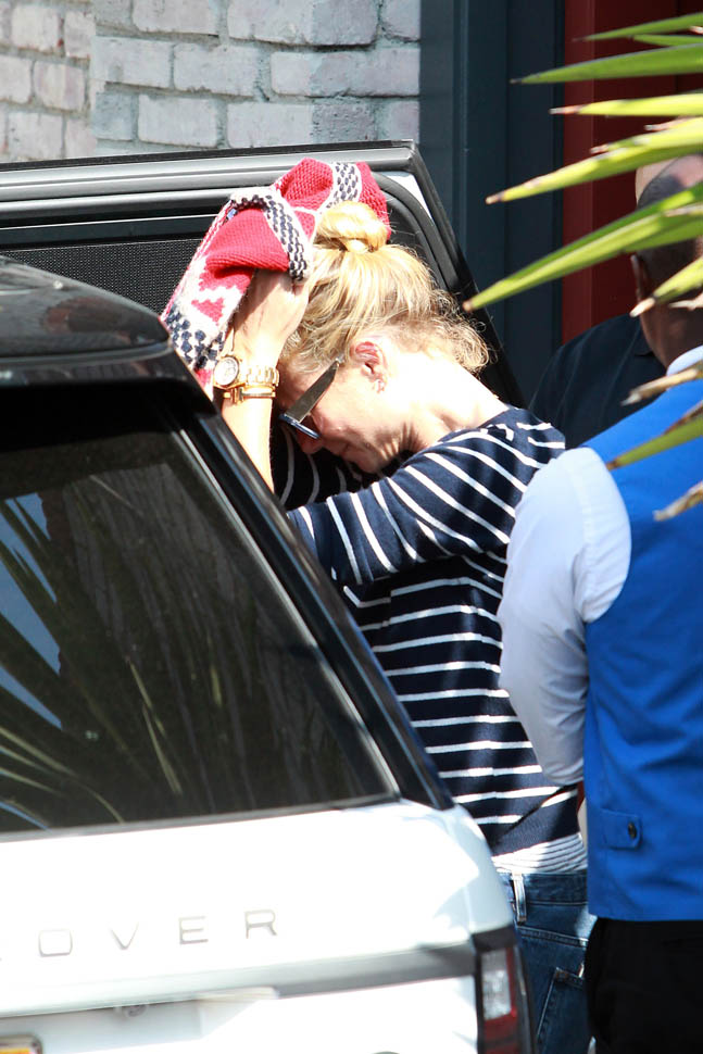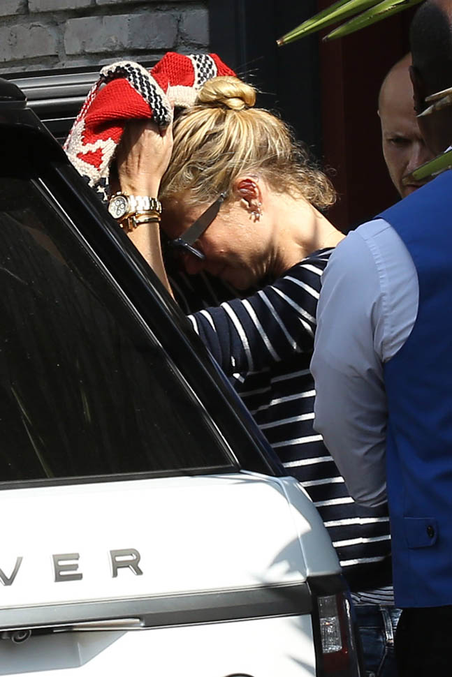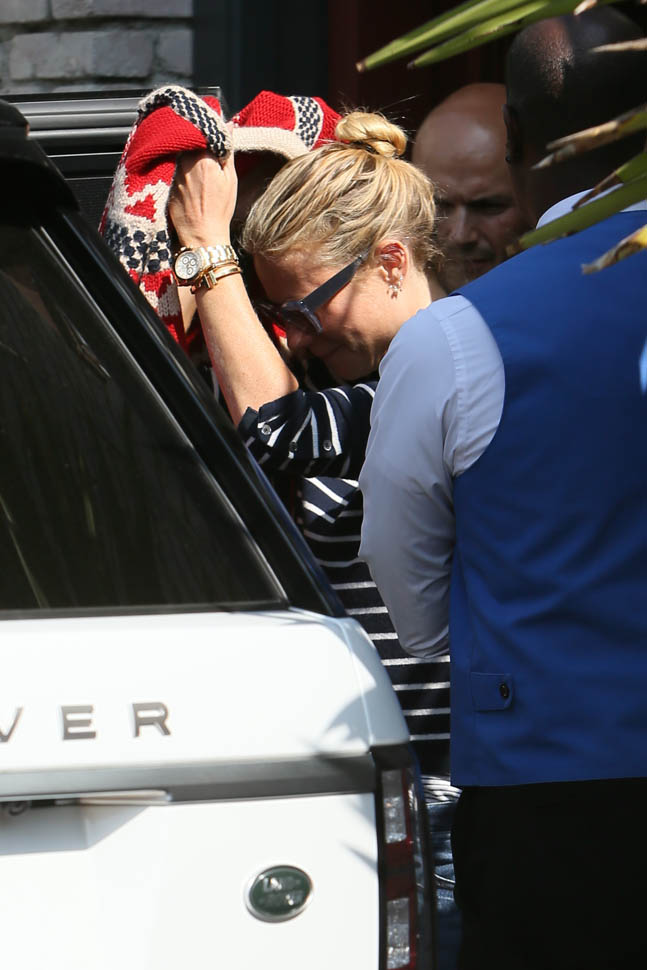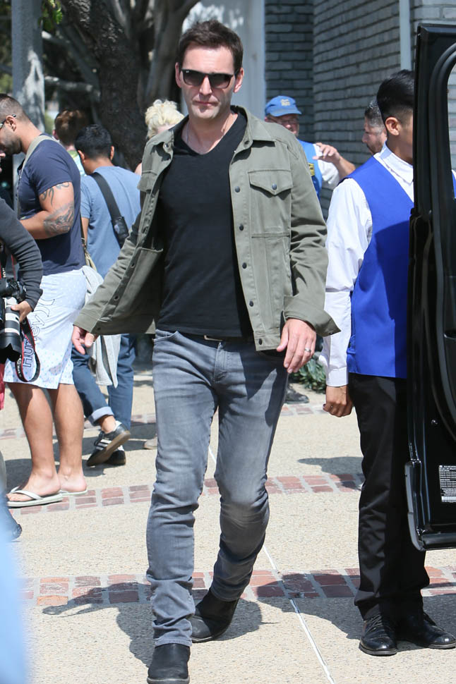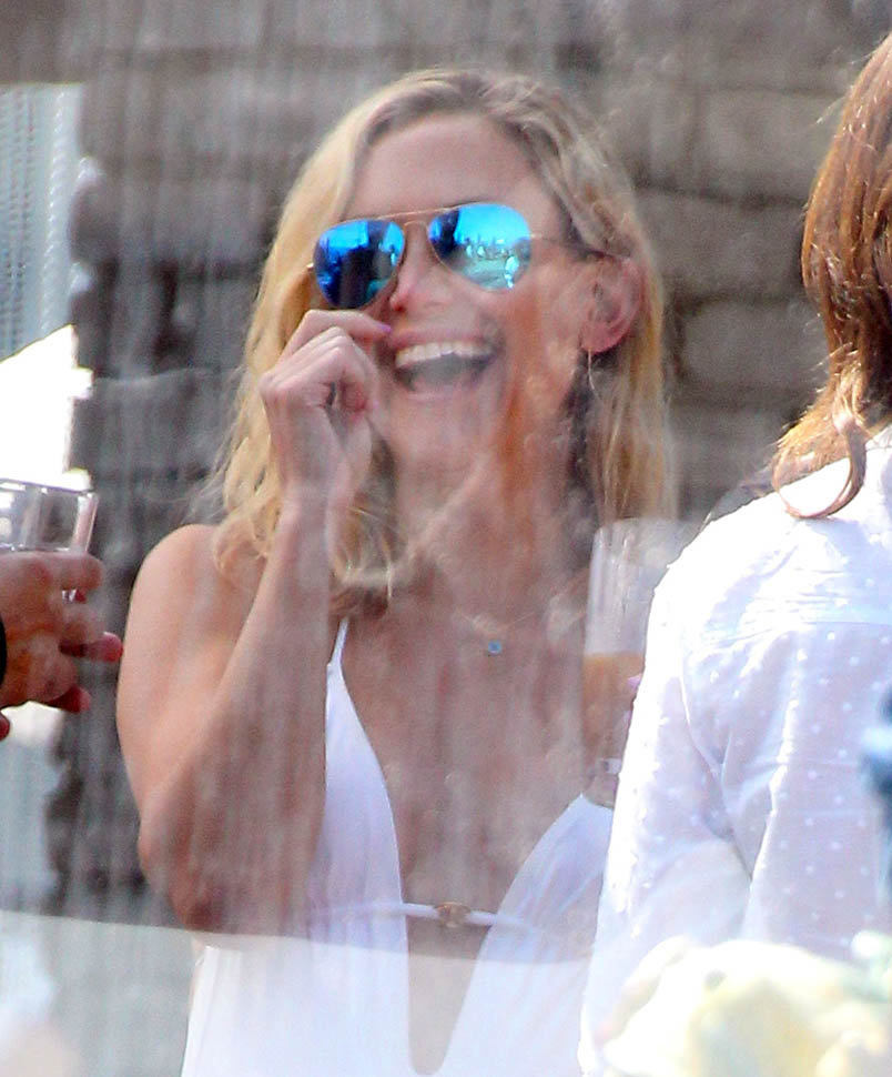 At this point, Joel Silver’s annual Memorial Day party has become like Vanity Fair’s post-Oscar bash. It’s an appointment for the paparazzi. Everyone knows about it. So if you decide to go, you understand that you’ll be photographed. Which, I guess, is why Gwyneth Paltrow had to be all extra about covering herself up when she got there. Anyway, Chris Martin showed up too, because kids were invited. So they were together as a family. Which is why Jennifer Lawrence, on break from shooting X-Men in Montreal, spent yesterday in New York.