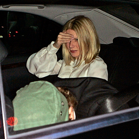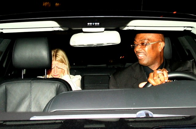 Here she is, with Chris ducking low in the car, arriving at B and Jay’s. Many have remarked on the unlikely friendship – again, this is crazy talk. Because cultivating a close friendship with the first couple of R&B is exactly the kind of thing Gwyneth would do to up the Paltrow Martin street cred…only she’d probably seat Tina Knowles on the Siberian end of the table during one of her Hamptons dinner parties.