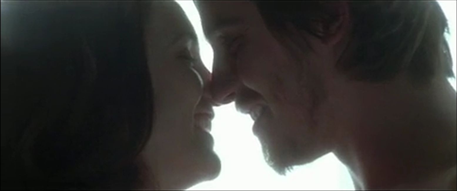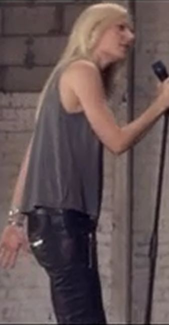 Like her clothes. She’s wearing the craziest designer clothes, and looks really crazy great, only, again, it just doesn’t seem the like the character. Singing in badass leather zipper cargo pants, playing guitar in a gorgeous asymmetrical dress, I’ve tried to screen cap it as much as I can but you really do have to watch to get the full flavour. Is this saying Nashville to you?