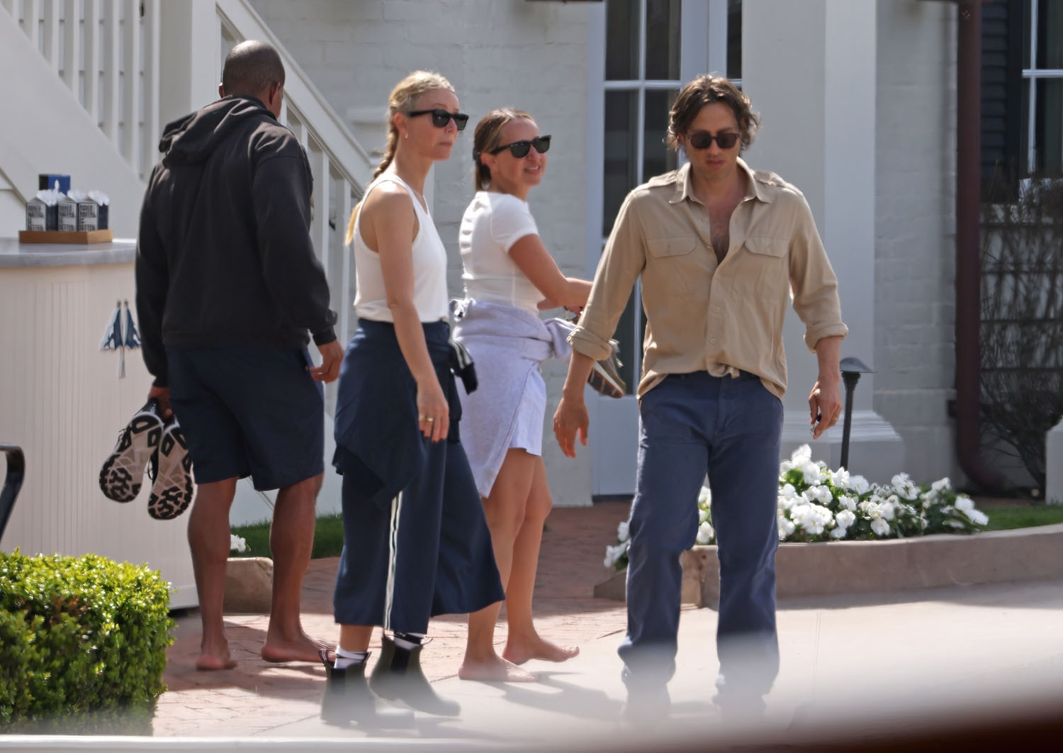 Gwyneth Paltrow’s been making headlines lately and her double date this past weekend was probably not high on the list of why people were talking about her but I’ll use it as my way in. She and Brad Falchuk met up with Jennifer Meyer and her billionaire fiancé Geoffrey Ogunlesi for lunch at a private club in Montecito. They look like they’re surveying the place for an event.