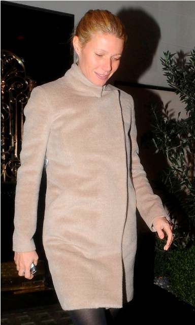 When it comes to Gwyneth Paltrow, I’ve been feeling lately like we’ve been excluded from some joke. Here we are shaking our heads at her embarrassing try, and everyone else, the Hollywood folks, the famous people, they’re all jerking off to it like it’s some kind of newly discovered brilliance. Part of that, of course, is typical celebrity sycophantism, but at the same time, it’s not like she’s losing any ground either. Someone wants to give her a record deal, someone wants to keep bringing her back onto Glee, someone keeps inviting her to sing at major award shows, someone is sending her beautiful cashmere coats and these amaaaaazing boots – seen here last night in London out for dinner with Stella McCartney. And that’s another thing: she’s still rolling with the “right” people – “right” by definition in her mind, that is.
