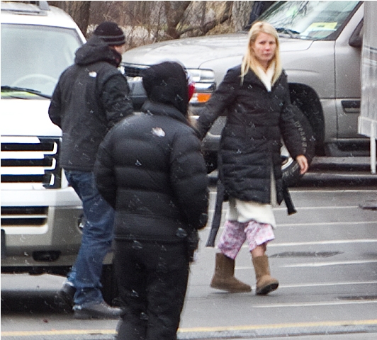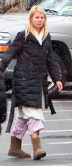 As for Gwyneth on the set of Contagion in very cold Chicago, it’s simple classic UGGs and pyjamas. This photo was taken last week. G is working of course with her old friend Matt Damon on the film. They were together in The Talented Mr Ripley and, obviously, when she was dating Ben Affleck. Matt is very fond of Gwyneth. He shows up when she hosts SNL. He was always gushing about how she schooled him on the Ripley set as they competed over better scenes. Now they probably talk about their babies.