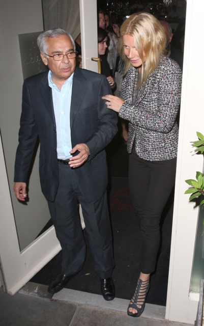 While Kate Moss prepares for her wedding this weekend, Gwyneth Paltrow is having dinner with Kate’s former business partner Sir Philip Green, better known as the guy who owns Topshop. As you know, Kate’s final collection for Topshop was released late last year. As you also know, GOOP is putting her name on everything these days. G was seen last night leaving a restaurant all smiles after spending time with Green and now everyone, naturally, is speculating that she’s about to fill Kate Moss’s void.