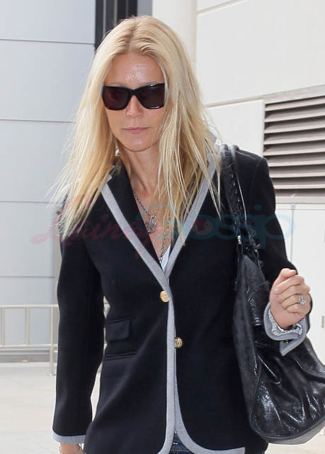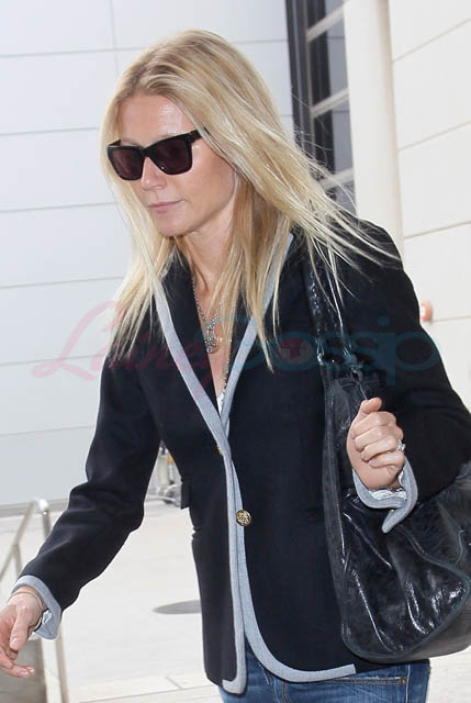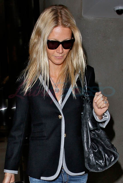 Gwyneth Paltrow arrived at LAX from London yesterday in maybe my favourite outfit of the week. And that’s a 10 hr flight! But it’s this blazer. And the perfect wash and fit of her jeans. And how effortless it is for her, at 5 ft 10, to stroll off a plane looking, you know, like she hasn’t really thought about it and, of course, totally perfect. That’s the difference between my G and Victoria Beckham. Gwyneth Paltrow whips out a compact, puts her finger on some lipgloss, and smirks behind her sunglasses at Victoria Beckham in the toilet, trying to steady herself during the turbulence, angling this way and that to get the tight dress over her head, on her tiptoes so as to not have to touch her bare feet too long to the gross bathroom floor, desperately needing a full-length mirror to check for imaginary bulges, and worrying about not being able to properly even out her blush in the sh-tty light and mirror.