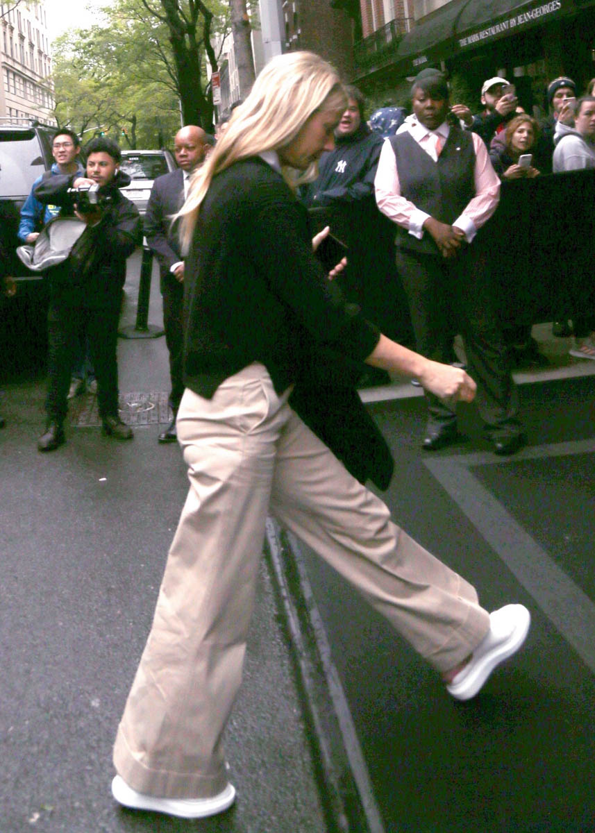 Here’s Gwyneth with Brad Falchuk in New York last night. She is expected at the Met Gala tonight. You’ll recall, back in 2013, the punk year, G showed up in un-punk pink: