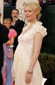 You are welcome to accuse me of being biased but in a sea of ordinary, safe, ho hum dresses, my idol showed up tonight and set another standard. Very few actresses can pull off this kind of creativity. Nicole Kidman yes. Naomi Watts, too. And Charlize, when she yanks the pickle out of her ass, can also play dress up with the elite. But it takes a certain “it.” And my Gwyneth delivered. She might have acted like a stuck up little princess all night, but she delivered. I loved the Balenciaga ode to Elizabeth. I loved the colour. I loved the sleeves. And above all, I loved her bump. No doubt, this look isn’t for everyone. I’m sure there are those of you who will email me and tell me to jump up my own ass. But in my mind, fashion innovation is about taking risks. If you want the same black dress over and over again, go find Jennifer Aniston. Oh…wait. She wasn’t there, was she? In fact, Friends is over now. So will she ever make it back to the Globes again???