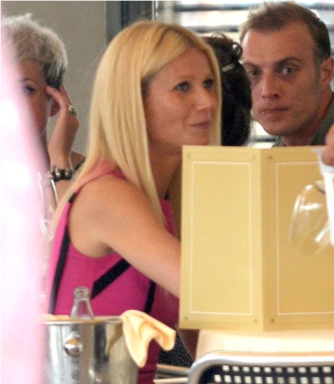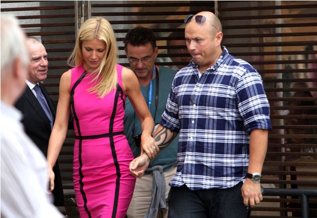 And attached - Gwyneth in pink, out in Venice the other day with Stephen Huvane, her publicist.