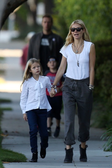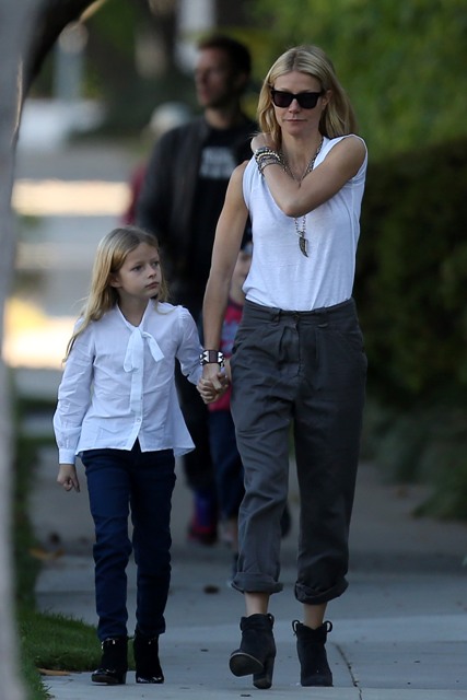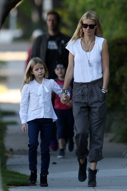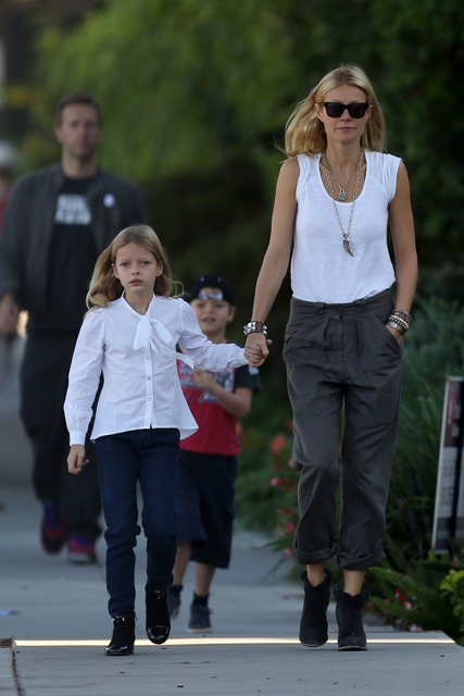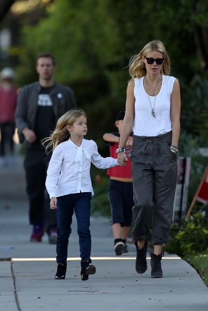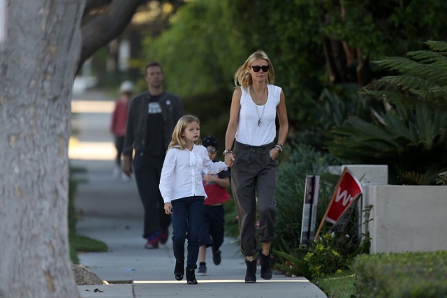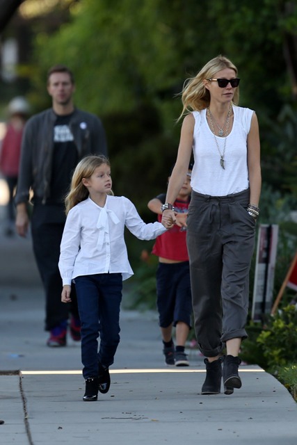 Here are Gwyneth Paltrow and Chris Martin on their way to school today with the kids. G has apparently been in LA prepping 33 Dias with Antonio Banderas which is expected to start shooting at the end of the month in Paris. Banderas plays Pablo Picasso during the period when he was working on Guernica and G is his lover and muse Dora Maar. So, you know, get ready for some Smug. She’ll be speaking Spanish in the film. Oh My God, you are going to be SO annoyed, I cannot wait!