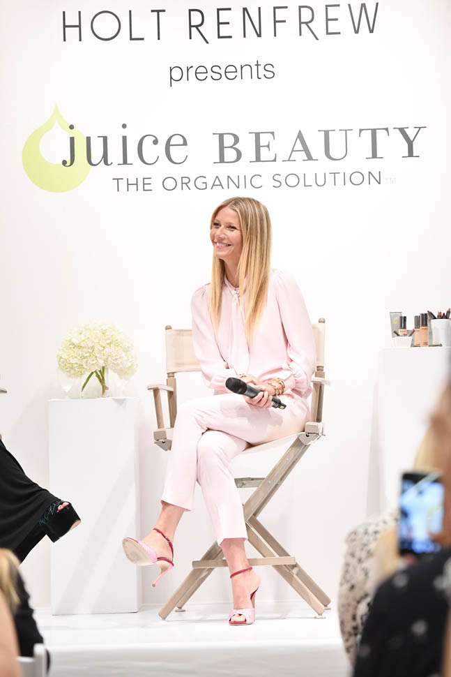 Gwyneth Paltrow was in Toronto yesterday at Holt Renfrew promoting her beauty line. Sasha was there and talked to her for etalk and afterwards her first email to me was, “omg omg omg I have to tell you everything”. When I wrote back to her with all caps and exclamation points, her answers were no more than 3 words each time, like a withholding dick, until she finally told me that before leaving, Gwyneth said to her, “I will love you forever”.