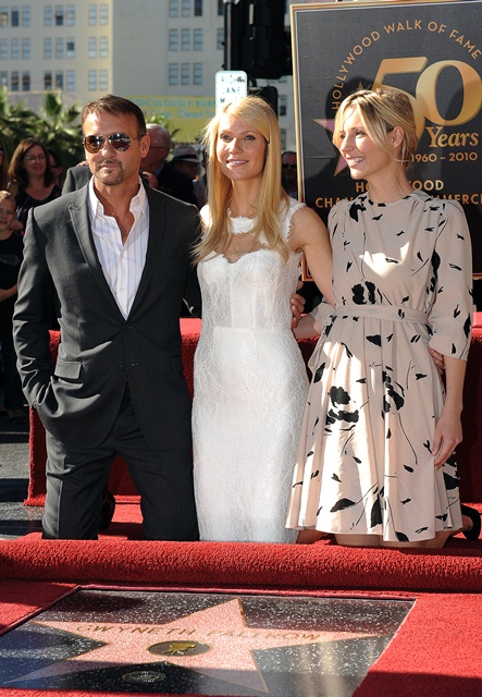 GOOP received her star on the Walk of Fame today. Totally masturbatory exercise, obviously, in time to support Country Strong. Which is why Tim McGraw and Shana Feste were there, her co-star and director, and also Faith Hill, and Matthew Morrison too, just to remind you that she sang on Glee. By the way, it was confirmed today that she’d be back on the show for a second appearance...and I don’t know why that’s news because it was always supposed to be 2 episodes, non?