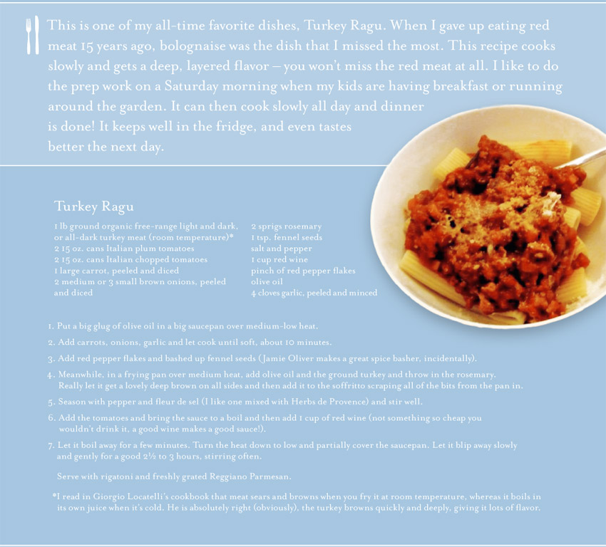 The best part about not dieting is TELLING YOU that she doesn’t diet, although some would consider turkey ragu to be a diet.
