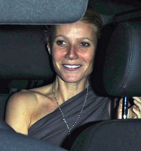 Two days after looking like total sh-t in Switzerland, Gwyneth was photographed last night in London for Gary Barlow’s birthday celebration and performance in a tight grey dress with big heels and her hair slicked back, a slight improvement on how we last saw her.