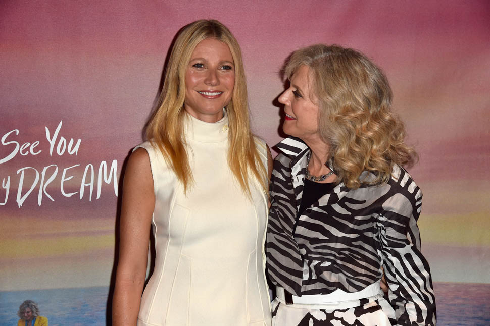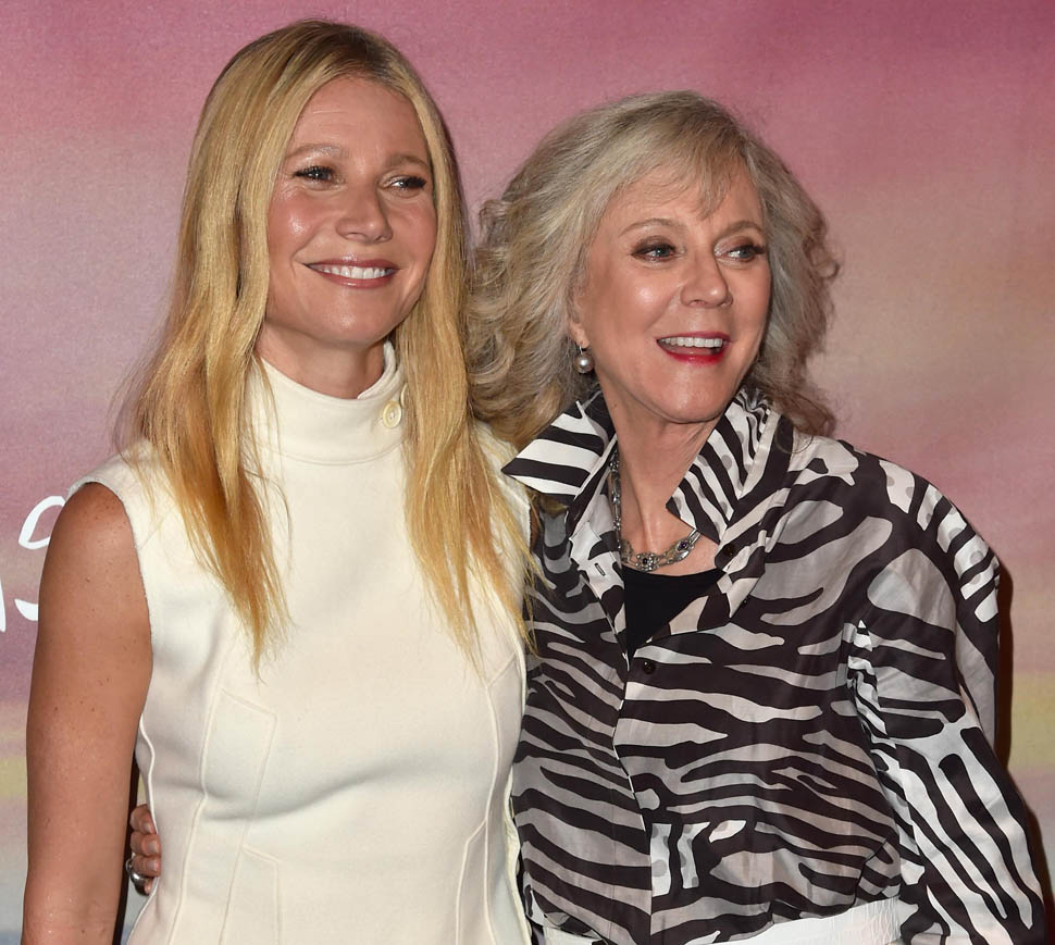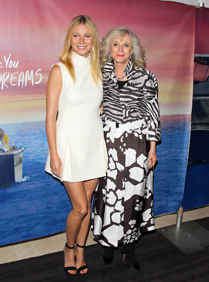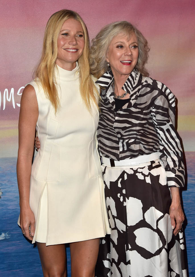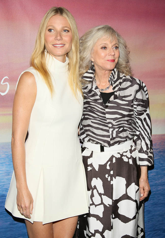 Gwyneth Paltrow supported her mother, Blythe Danner, at the premiere of I’ll See You In My Dreams last night in LA. Man, Blythe looks so good. And I love the two prints she’s mixing here. Will G get Blythe’s genes? I’d want Blythe’s genes.