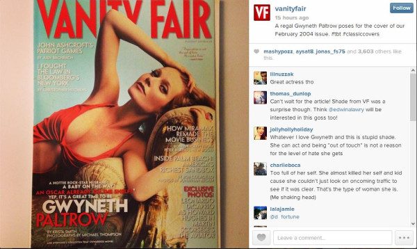 And the day before, when the Graydon vs Gwyneth feud coverage was picking up momentum, Vanity Fair posted a Gwyneth Paltrow retrospective on its website. Click here to see it.