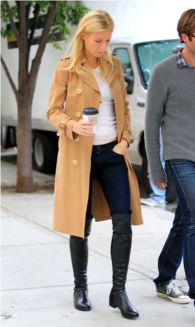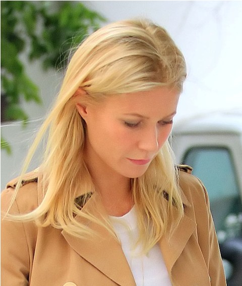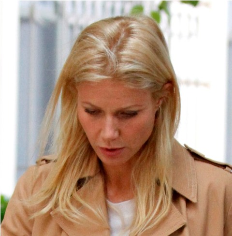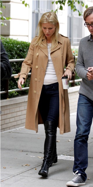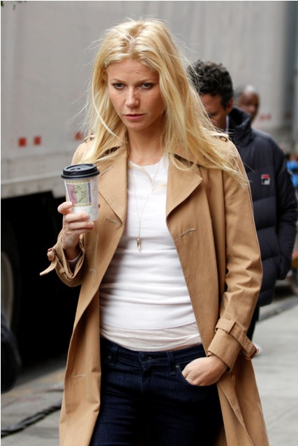 Here’s G yesterday in New York continuing to work on Thanks For Sharing. She looks great in coats, this one. She really does any coat well.