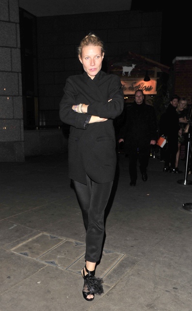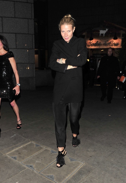 Here’s Gwyneth Paltrow in London last night at the Gambit after-party to support her BFF Cameron Diaz even though there are no pictures of them together. Interestingly enough however, there is a picture of Cam with Elle Macpherson -- two crazy heart bitches with crazy bodies. I’ve seen men run AWAY from Elle Macpherson she’s so, um, forward is probably the most diplomatic way of saying it. And you already know about Cam’s romantic style. So can you imagine if these two double-teamed? I wonder if G would bother discouraging it. Some battles you can’t win. Best to conserve energy, for when she comes home later having made a fool of herself once again. Cam, I mean. Obviously.