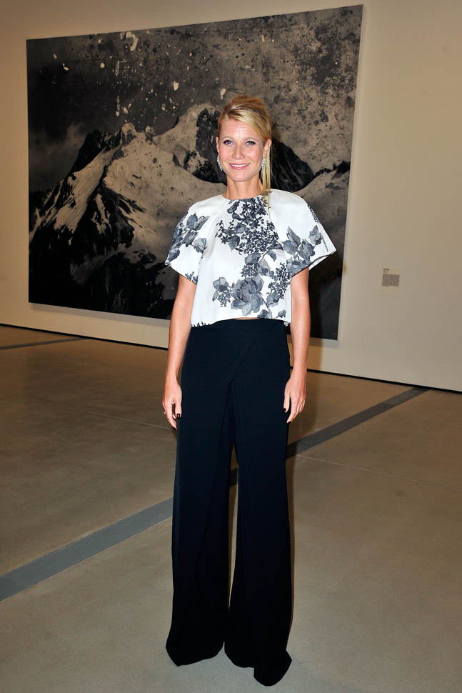 Attached - Gwyneth at The Broad Museum Black Tie Inaugural Dinner last week, Brad Falchuk at the Scream Queens premiere last night, and Gwyneth and Chris Martin having a friendly dinner with the kids this week in LA.