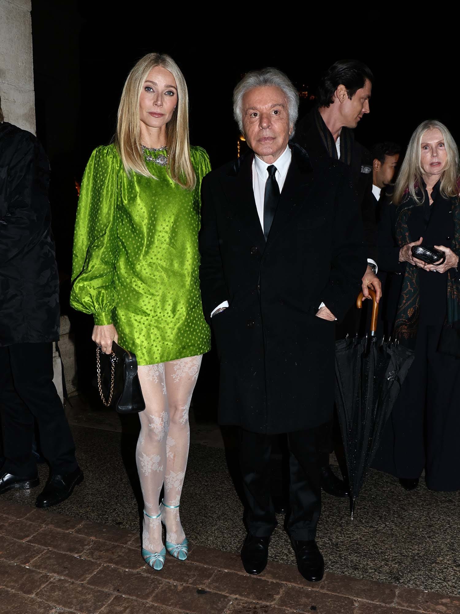 Do you see what I mean about white tights being a trick? Everyone else gets a cool ass coat, but Gwyneth Paltrow gets WHITE TIGHTS. She did, however, post a nice tribute to Valentino, who passed away in January.
