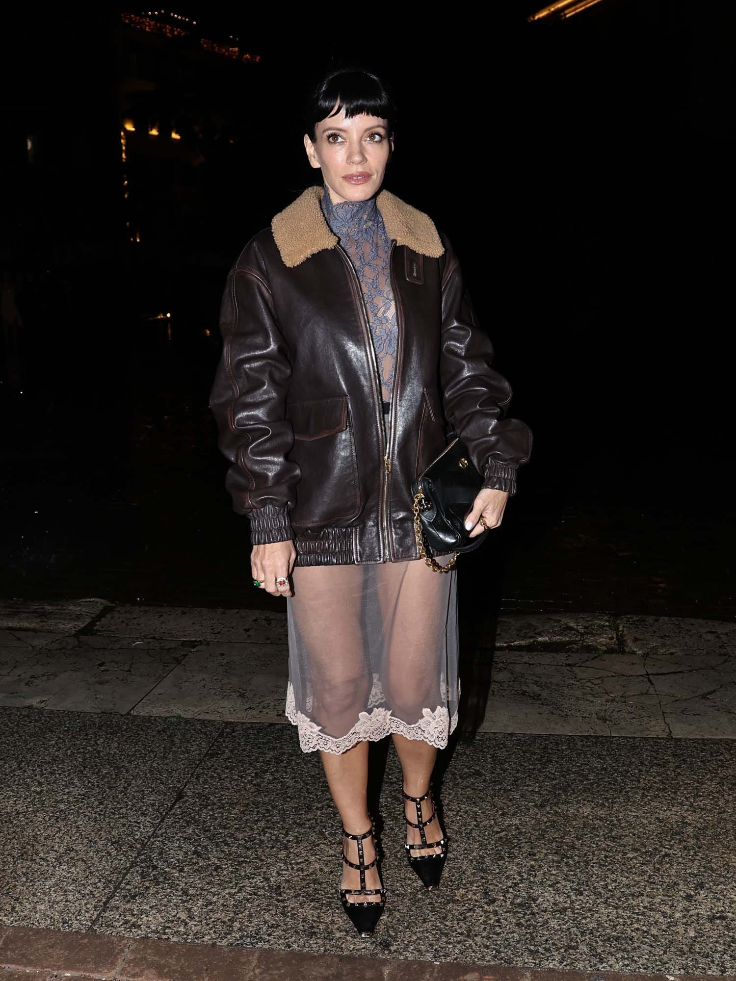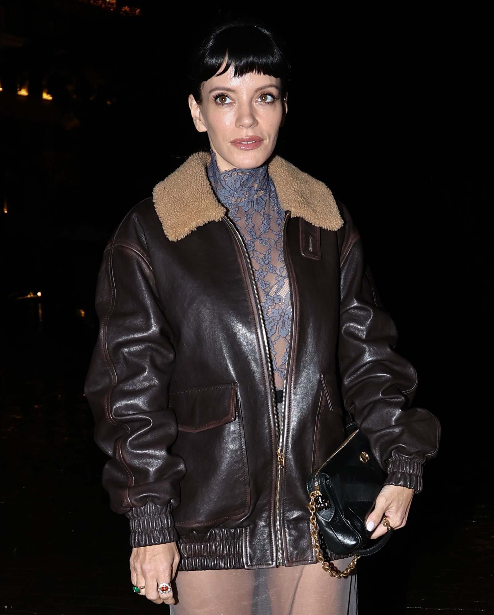 On a similar theme, Lily Allen has a GREAT bomber jacket and a deeply questionable skirt (dress?). The bomber is SO good, I wish the rest of the outfit was less distracting.
