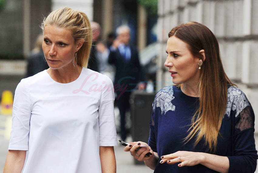 Gwyneth Paltrow was out in London today with friends and or business associates. Looks like she’s heading to a meeting or something GOOP-related. G is usually in casuals and jeans when she’s not working. Should I have put the word “working” in quotations?