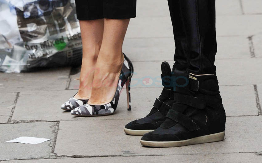 I like those camouflage heels on her. I would hate them on anyone else. Anyone else would wear them with some clingy black dress. Or leather pants. G’s all Hamptons on top and fly girl on the bottom. This is how. She has a pair of jeans with that print too. She was wearing them when I interviewed her for Iron Man 3. Of course she didn’t put the heels and the pants together. Who do you think this is?