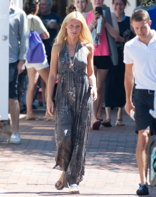 Yesterday G was photographed in a great grey maxi heading to a book signing. Last week several of you wrote to me about a story in US Weekly about how G was at a family dinner and everyone ate carbs but she only ate steamed vegetables. OK. I don’t know what you want me to say about this. That she’s a liar? They’re all liars! Blake Lively eats cupcakes and sweets and looks like she does?