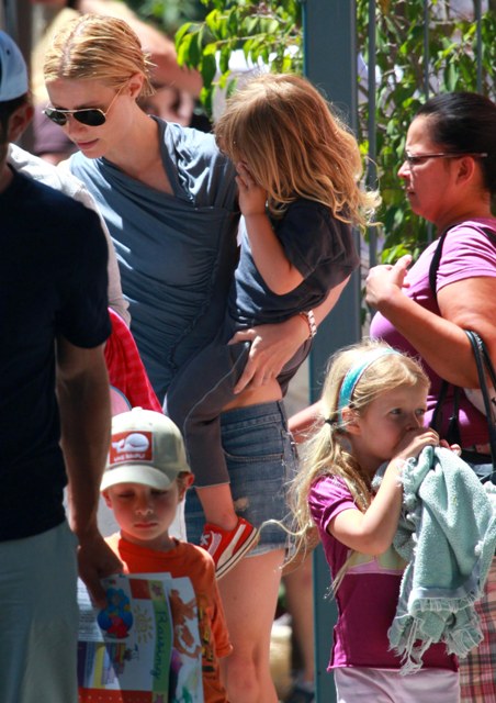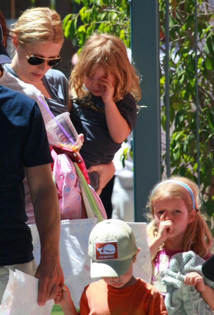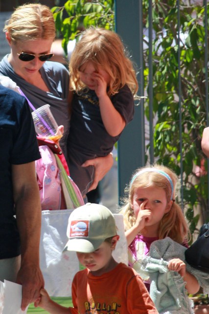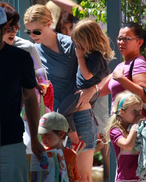 Anyway, photos attached of G picking up her kids at school the other day in LA. Can’t wait for you judgy moms to start criticising her for letting almost 5 year old Apple suck her thumb.
