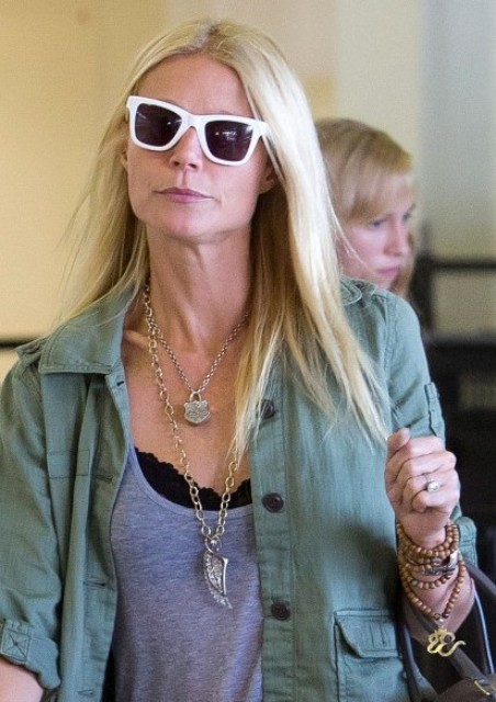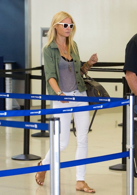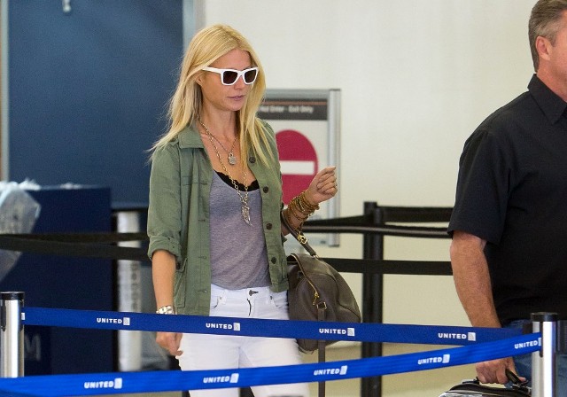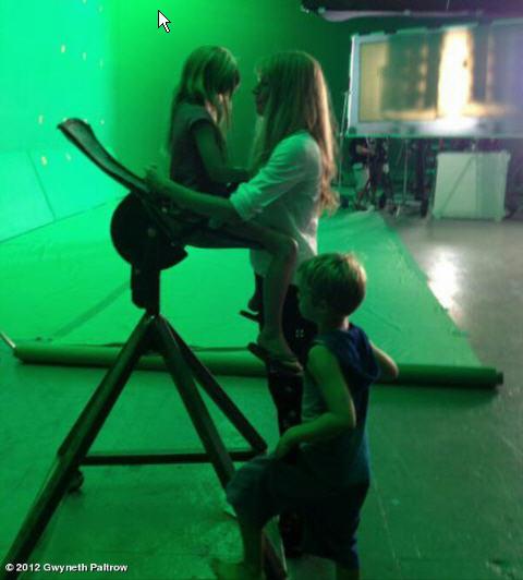 And here's Gwyneth arriving at LAX the other day setting the example. She's been working on and off this summer on Iron Man 3 and posted this lovely photo that I totally missed on her WhoSay a few weeks ago of her on set with Apple and Moses.