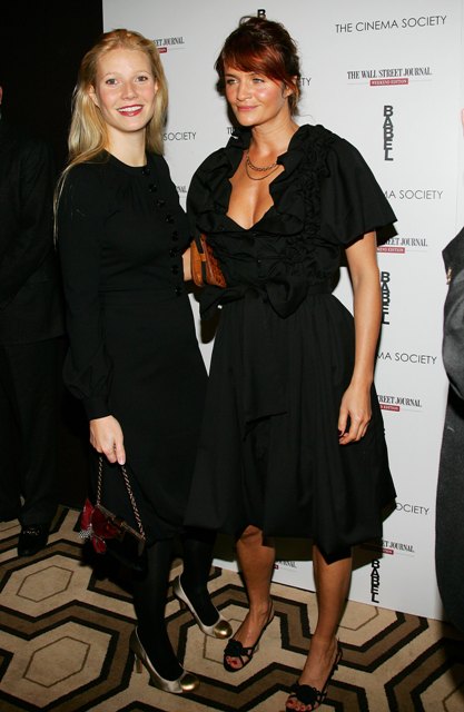Looking lovely at the Babel premiere in NYC last night with Helena Chistensen. Though Brad was obviously not in attendance, interesting she chose to make it out for this one, given that she tends to avoid the Hollywood social scene these days unless she"s being paid for it. Interesting also her recent travel schedule - the children are with her, the husband remains hidden and naturally, people are starting to talk. December will mark their 3rd wedding anniversary and since there has been little insight if any into their relationship, the rumours swirl often unsubstantiated. Two schools of thought, for what it"s worth, on the one hand I"ve heard that like any *artist*, Chris can be quite temperamental and ironically, between the two of them, SHE is the one less dramatic. Then there are those who say that his battles with the pappies are for her benefit only, that he is graciously contrite when she"s not around, almost embarassed to be making such a production of not being seen together. Like I said before - rumourmongering in the absence of anything truly titillating though all are in agreement that a possibility of a split is nonexistent. For now. See also a new photo of the adorable Apple, not seen in a while, hair just as blonde, getting longer, the cutest, cutest thing - only the child of Gwyneth could match pink and orange, non? Source