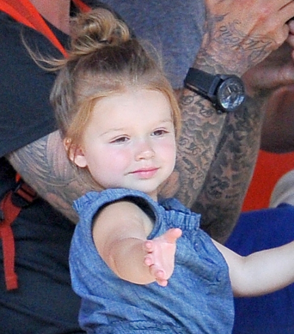 At one point, as you can see, H7 seems to reach out with one hand – at her mother? I’m assuming she’s reaching for her mother. Posh has always been said to be a very involved parent. And fun. Like she always talks about how her boys kick soccer balls at her head. For us though, the Posh we get is the hip cocker on the carpet. The rare glimpse of that side of her is her daughter’s eager hand, matched by the affection in her eyes as she sees the most important person in her life.