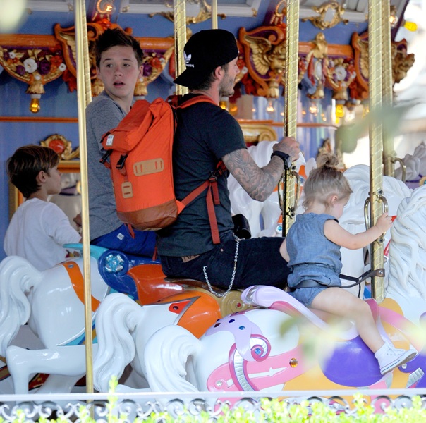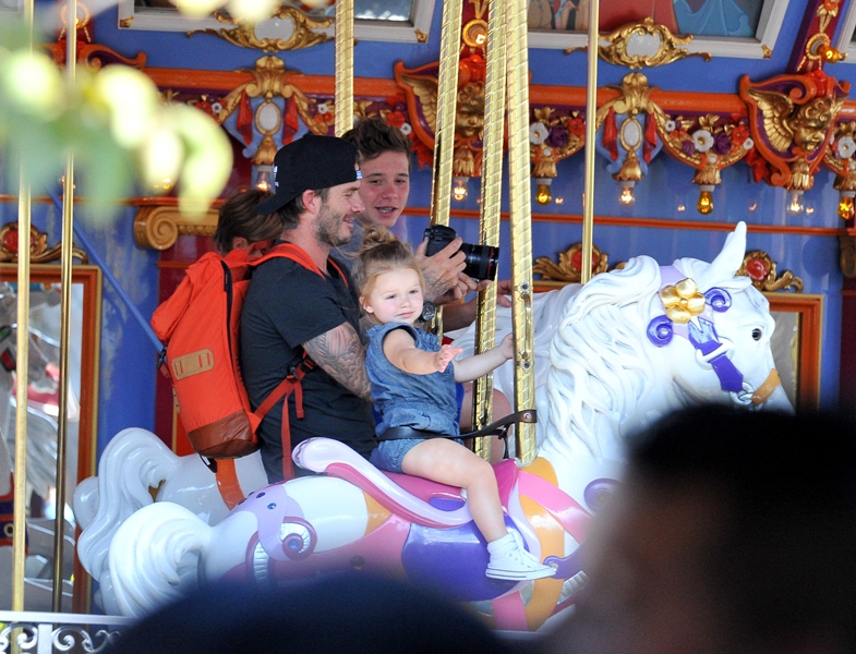 H7 went to Disneyland with her family yesterday. Check her out on the merry-go-round with dad and her big brother Brooklyn who, obviously, only went on to accompany her, because what 14 year old wants to ride on the merry-go-round. This is adorable too. I have a nephew around the same age as Brooklyn. And his baby sister is 4 years younger. We took them to Playland last year and put them on the bungee jump together. She was terrified. But she did it. And when they came off, he gave her a proud pat on the head when he thought we weren’t looking and I almost died from love.