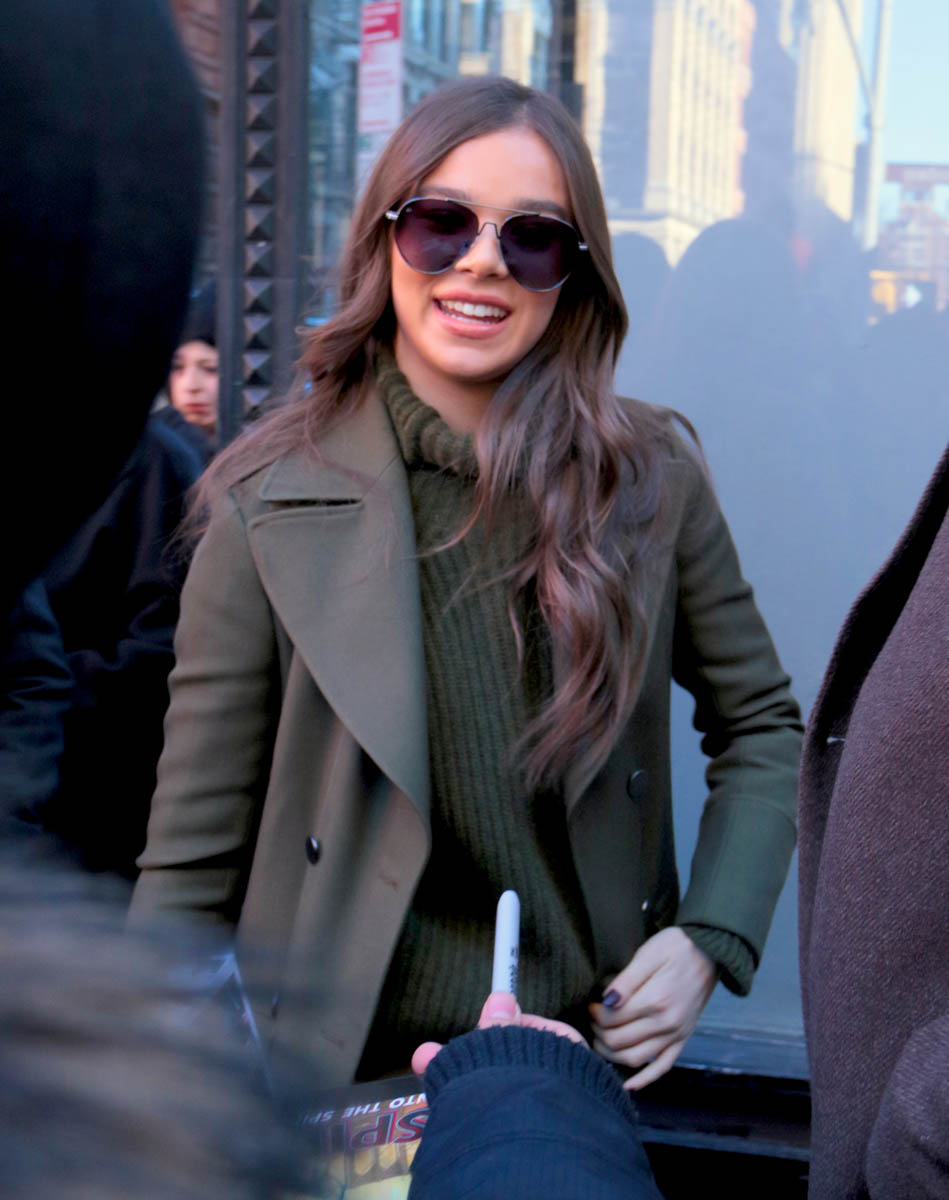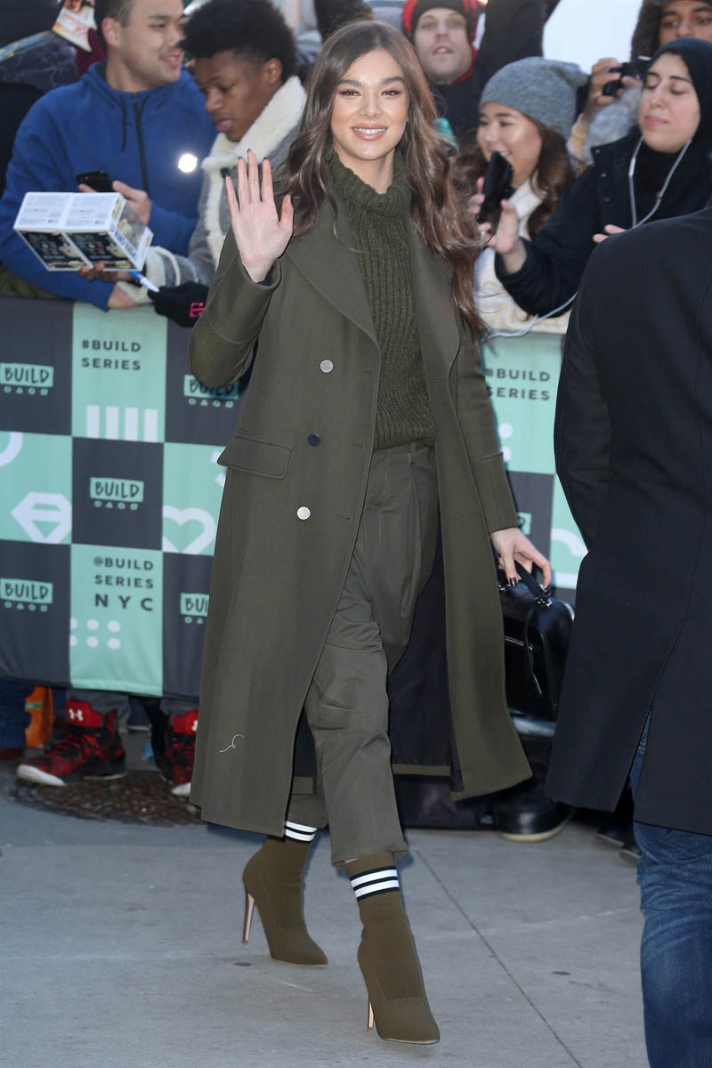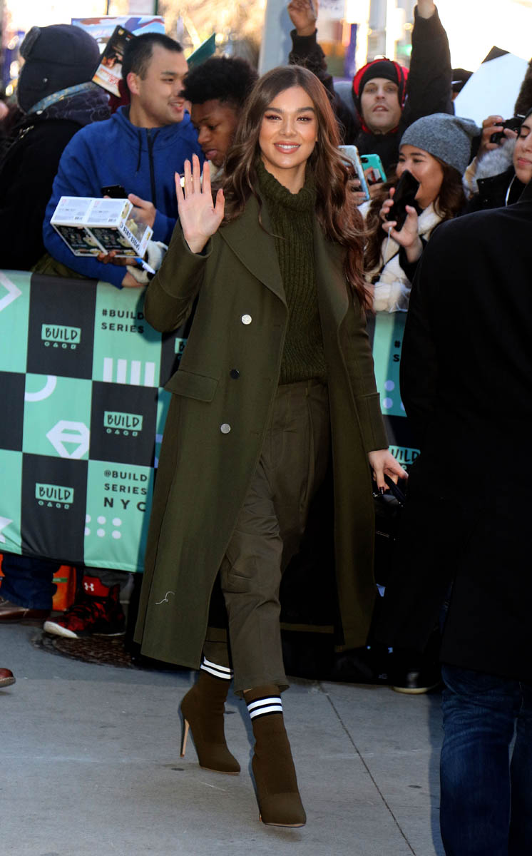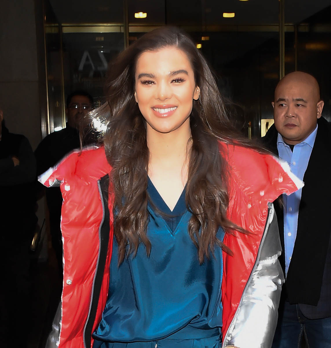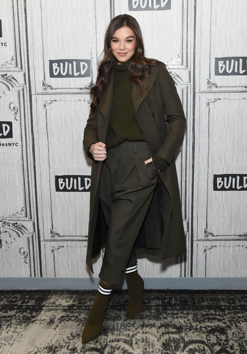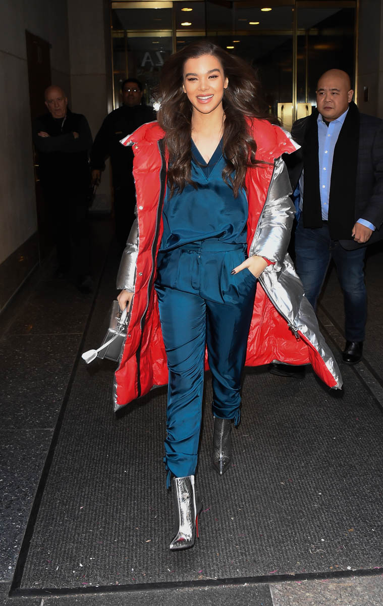 Here’s Hailee in New York today promoting Bumblebee in multiple outfits including what could have easily been the Outfit of the Week had I not had so much else to say about the movie. This jumpsuit! THIS COAT. That red lining really makes it right?