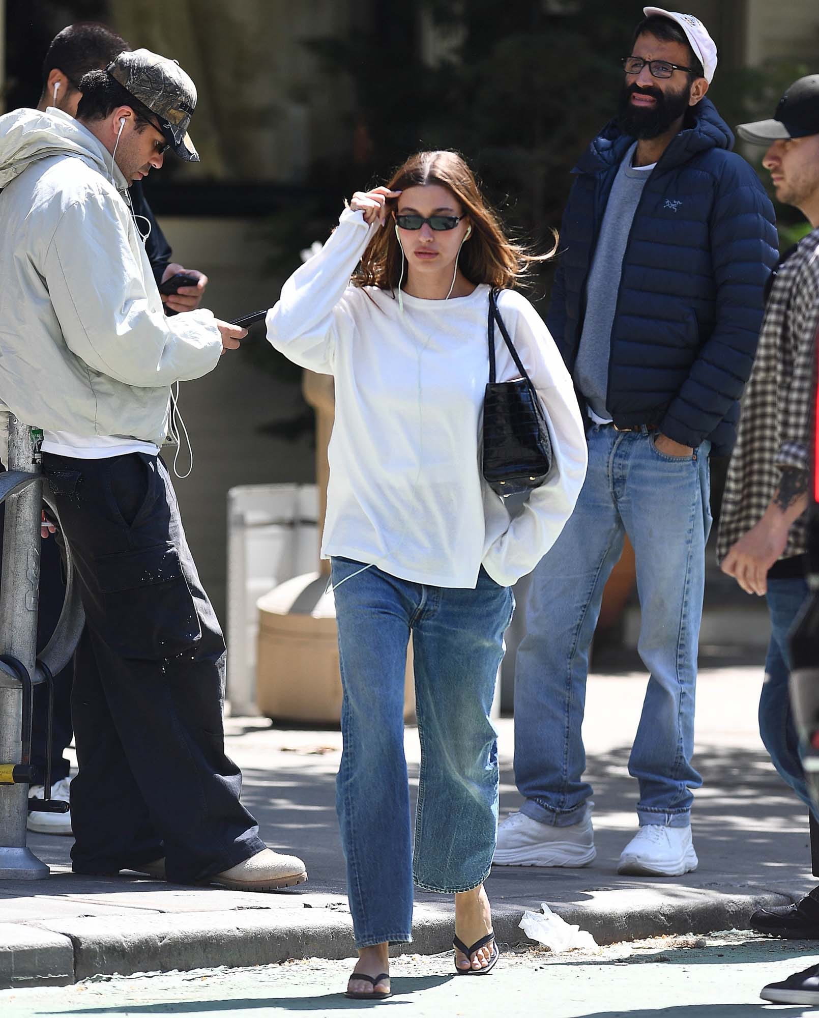 Hailey Bieber loves a technical jacket (she usually goes with vintage) and this one on Alexa Chung is Miu Miu. I like the look but $4700 for a nylon jacket is bananas.