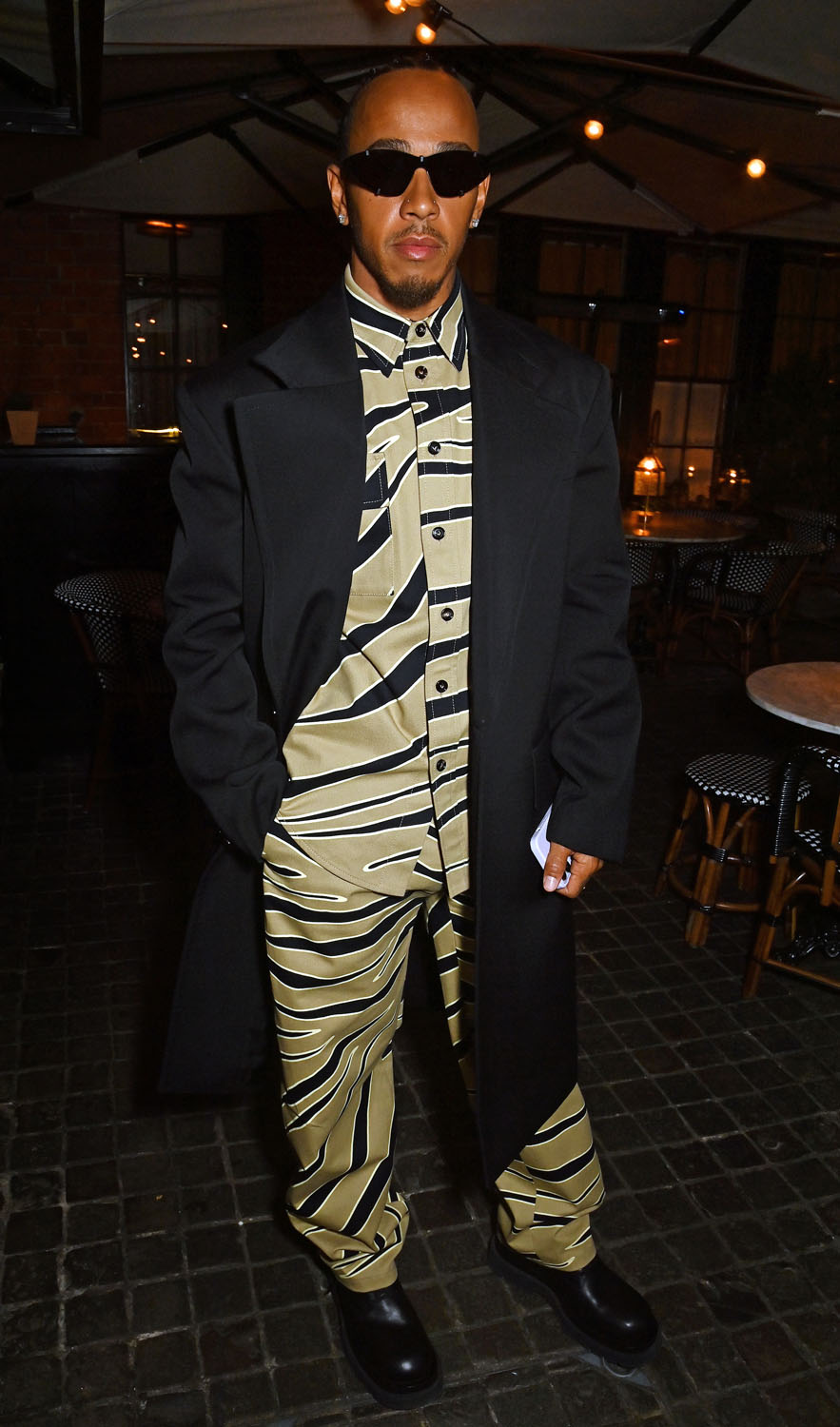 Hailey Bieber was in London last night for the Rhode launch party. Justin was there with her along with a handful of other celebrities, including Lewis Hamilton in a black and tan animal print set under a long jacket.