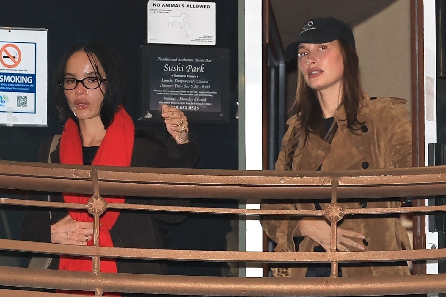Hailey Bieber and Zoë Kravitz met up for dinner last night at Sushi Park in LA which is seemingly where they all only ever go. They’ve been friends a long time – Zoë, like Gigi Hadid, is one of those who can straddle friend groups, between Taylor Swift on one side and the Kardashian-Jenners and the people who orbit them on the other side. Hailey and Zoë, though, have multiple layers of connection, not just with their friends, but also their brand association as both are Saint Laurent ambassadors.