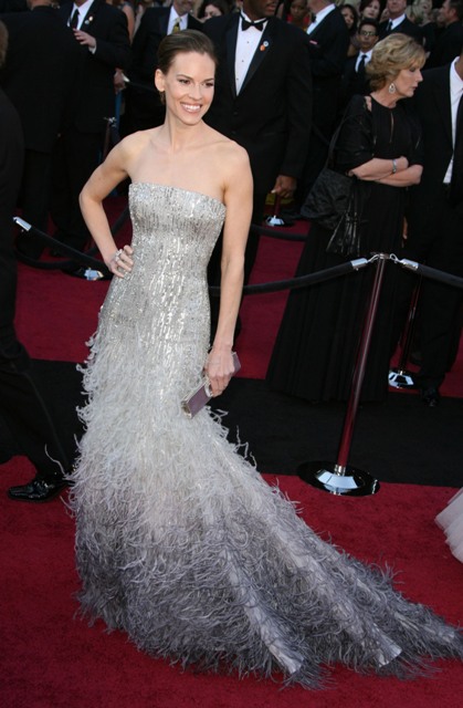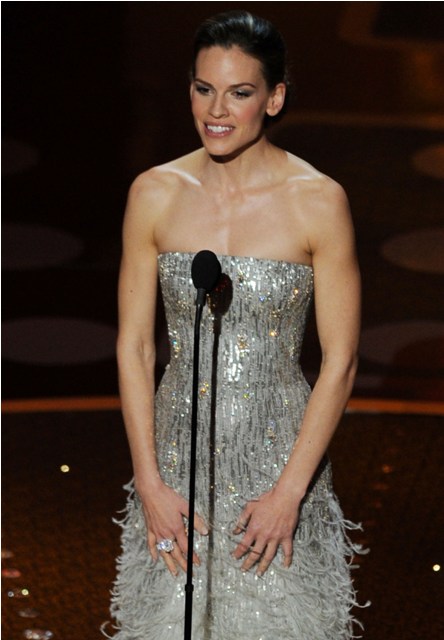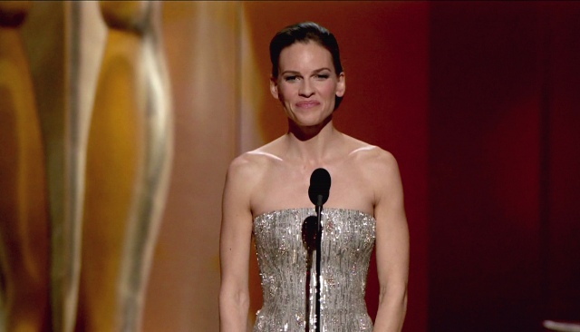 Then again, is that better or worse than being Hilary Swank? She’s like the obligatory valedictorian of the group, it seems. I mean, she’s won twice, so it’s not like anyone can contest her being there- but nobody seems to like her. Nobody delights in her presence. She doesn’t fill any particular slot other than “Hilary Swank, Two-time Oscar Winner”. Nobody thinks she’ll say something funny, or will wear anything other than a serviceable but unremarkable sheath that goes on her perfectly acceptable but unremarkable person.