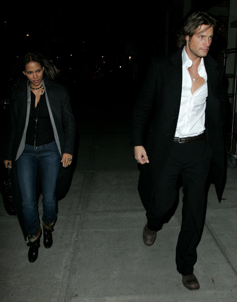 So the smut lines were buzzing yesterday when new photos surfaced of Halle Berry accompanied by a very hot, if mildly cheesy, French Canadian model who she apparently met during a Versace ad shoot, from Glitterati. His name? I didn"t bother to learn it. After all, does it really matter? He"s gorgeous. And while I"m not crazy about the open shirt Euro look he"s got goin" on, I do have to give the man respect for not having any tufts of Alec Baldwin shooting out from his chest. The official word is that they are just friends. Which is fine with me. There is nothing wrong with just friends who f&ck. Especially when so much gorgessity is involved.
