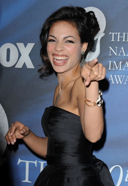 And Rosario Dawson, soooo gorgeous but for that red carpet dressing problem, finally a winner last night in style and in spirit. The dress is lovely. Almost as lovely as Blair Underwood’s face. Yum.