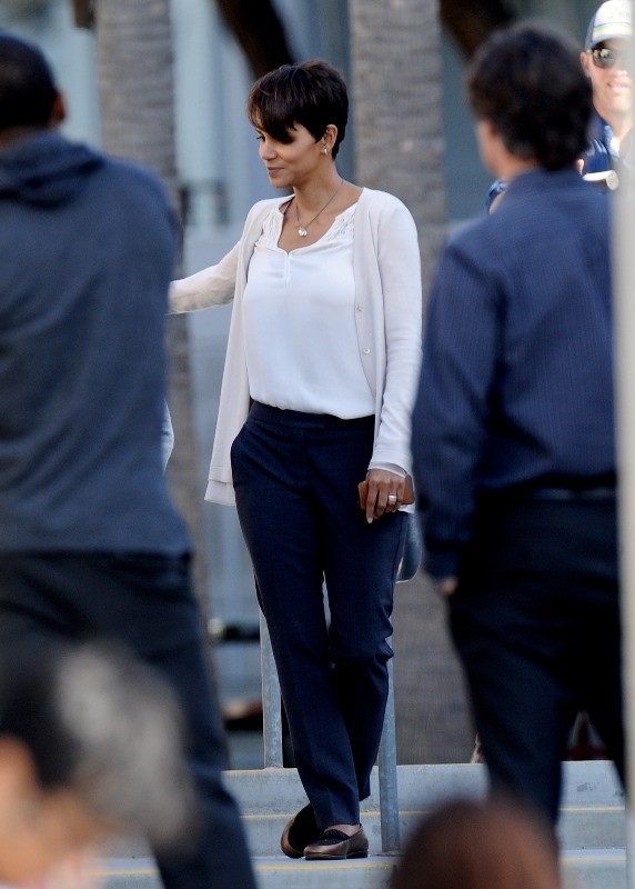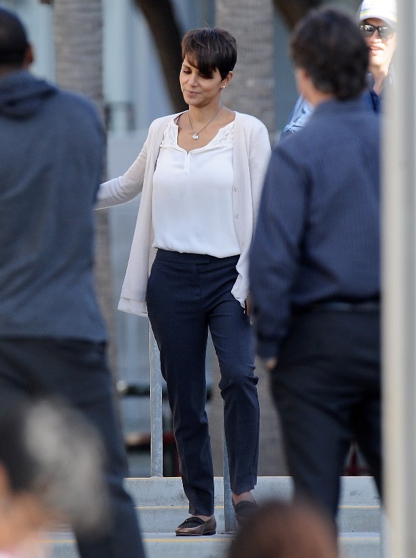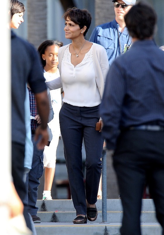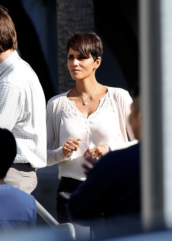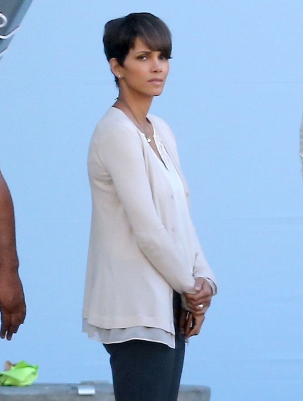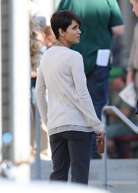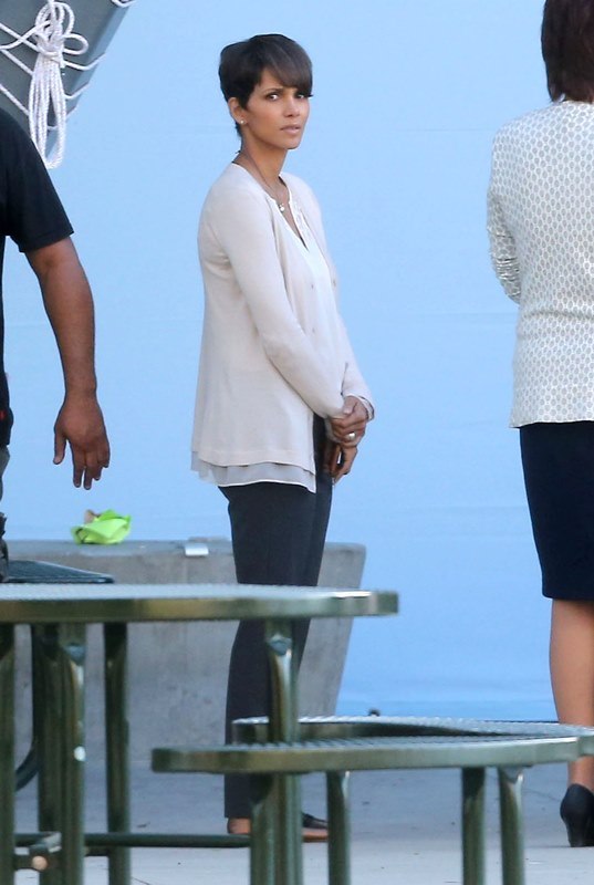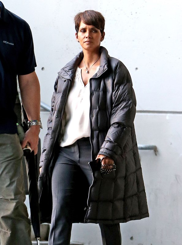 Halle is currently shooting the pilot for her new television drama Extant. I still hate that title, that word, “extant”. I previously wrote about that here. Check her out on set yesterday with Goran Visnjic. Some outlets are pointing to the ring she’s wearing and seeing it as a sign that it’s all fine but I wonder if that ring is part of her character’s costume. Was that a smutty tingle I just felt seeing these shots of her with her co-star? I’m pregnant right now with my book-baby, Listen To The Squawking Chicken, and giving birth in Canada in two weeks so maybe my radar is totally off with all the surging hormones.