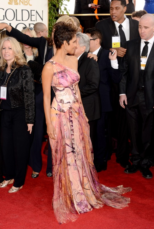 It has to be her favourite dress. Because she’s been wearing it for 10 years. This time the dress is purple. In 2003, the year Adrien Brody sexually harassed her, it was gold. In 2005 it was silver. She also did a one shoulder at the Golden Globes that year. And this year at the Globes it was sliiiightly different but not really. See below.