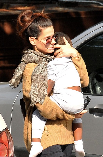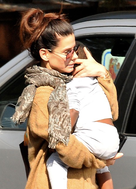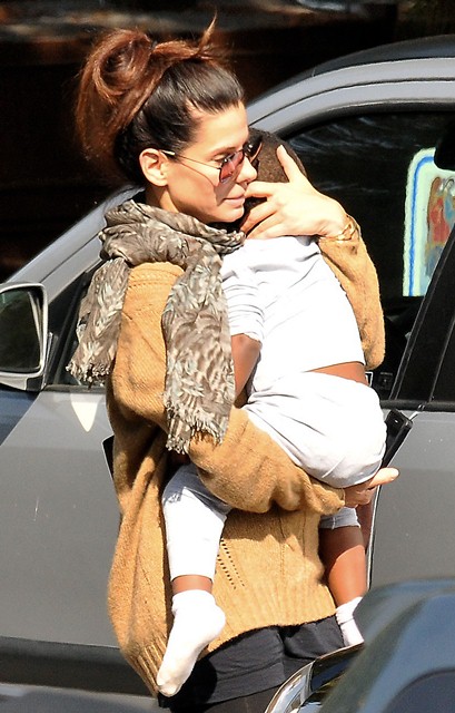 Sandra Bullock picked up little Louis from school. He seems exhausted from all the Halloween-ing.