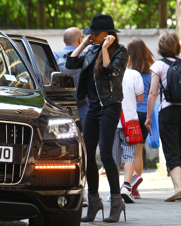 Here she is with her mother today as they attended brother Cruz’s end of term prize day at school in cute green little shoes. But not as cute as her Chloes? Posh tweeted a photo of a tiny pair of nude baby moccasins. Those look really, really comfortable. The girls version is £131.